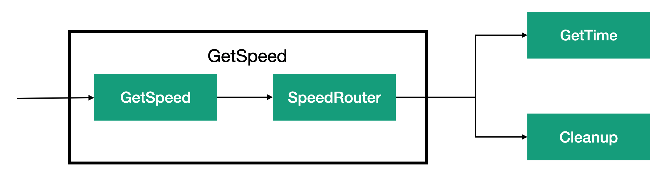 Both components, GetSpeed and SpeedRouter, can be implemented in one actor. The actor first performs a processing task and determines by its result whether to send a message to the GetTime task or to delete it. The decision to implement these components in one actor or in two depends on the reusability requirements. If you want GetSpeed to be a separate function, we will not be able to combine both steps in the same actor. But if the processing actor also has to decide on further processing of the message, it will be easier to combine these two components. Another factor could be to separate the usual processing stream from the error processing stream for the GetSpeed component.